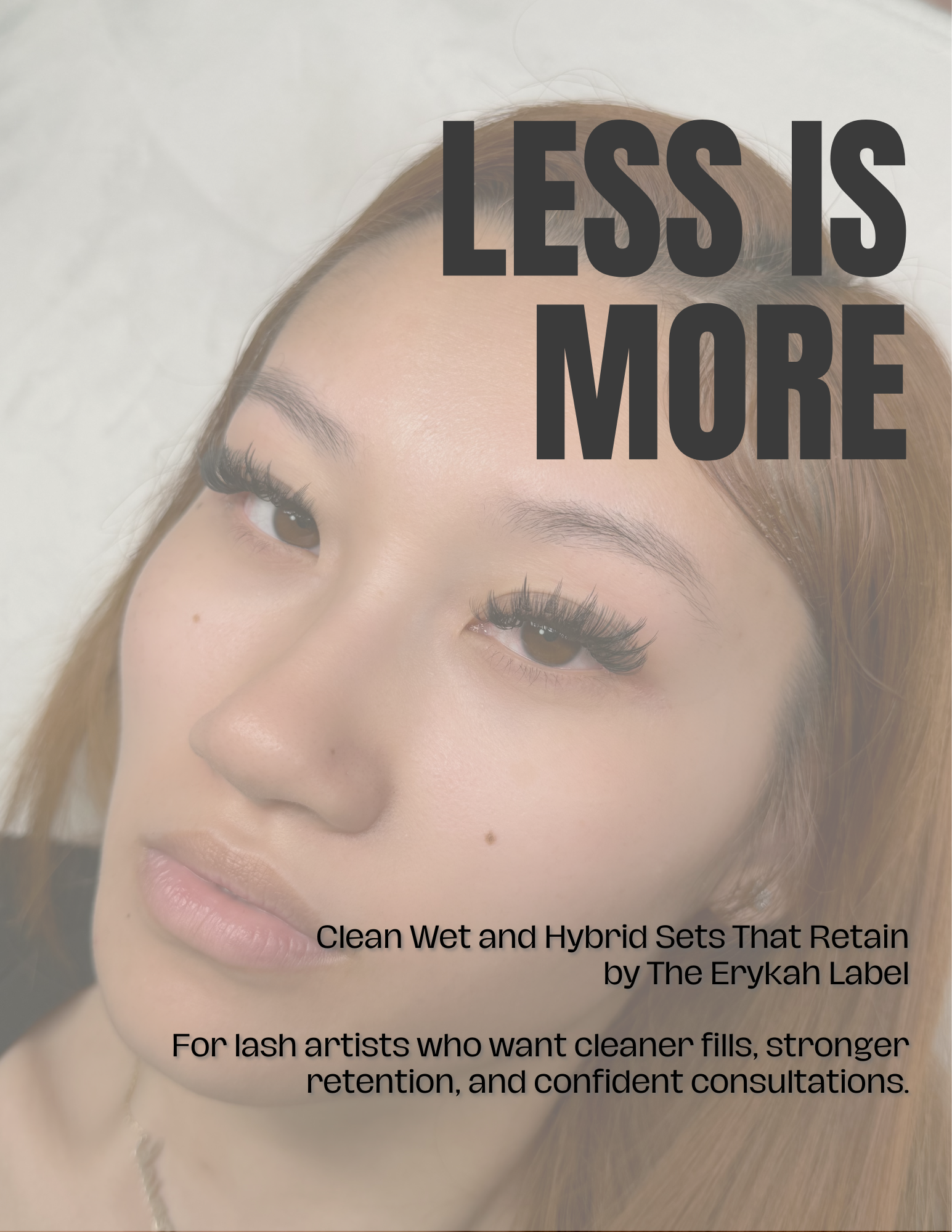 THIS GUIDE INTRODUCES THE LESS IS MORE APPROACH TO LASH ARTISTRY FOCUSING ON CLEAN DESIGN, LASH HEALTH, AND PREDICTABLE RESULTS.